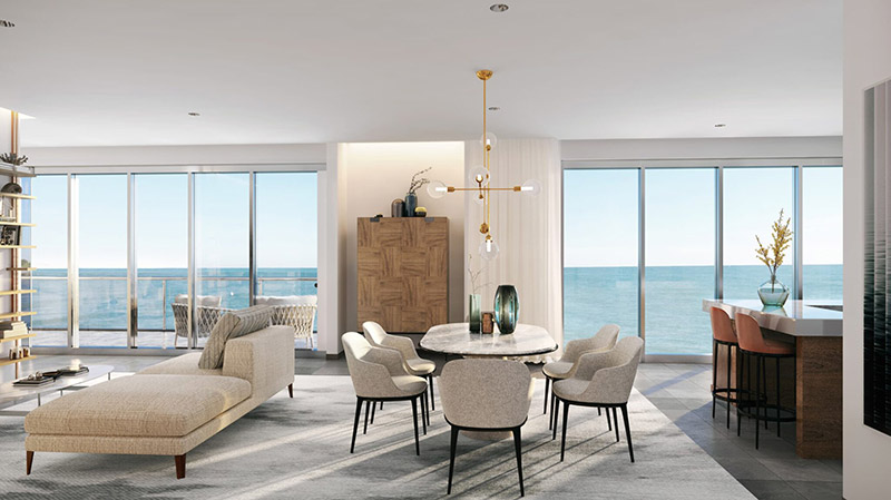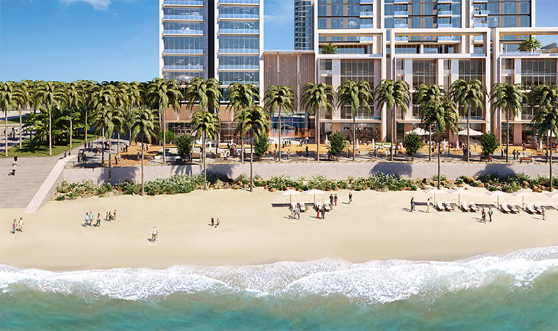 Spacious 1–3 bedroom apartments, duplexes and penthouses with panoramic sea views, beachfront design, and access to the Oceanfront promenade.